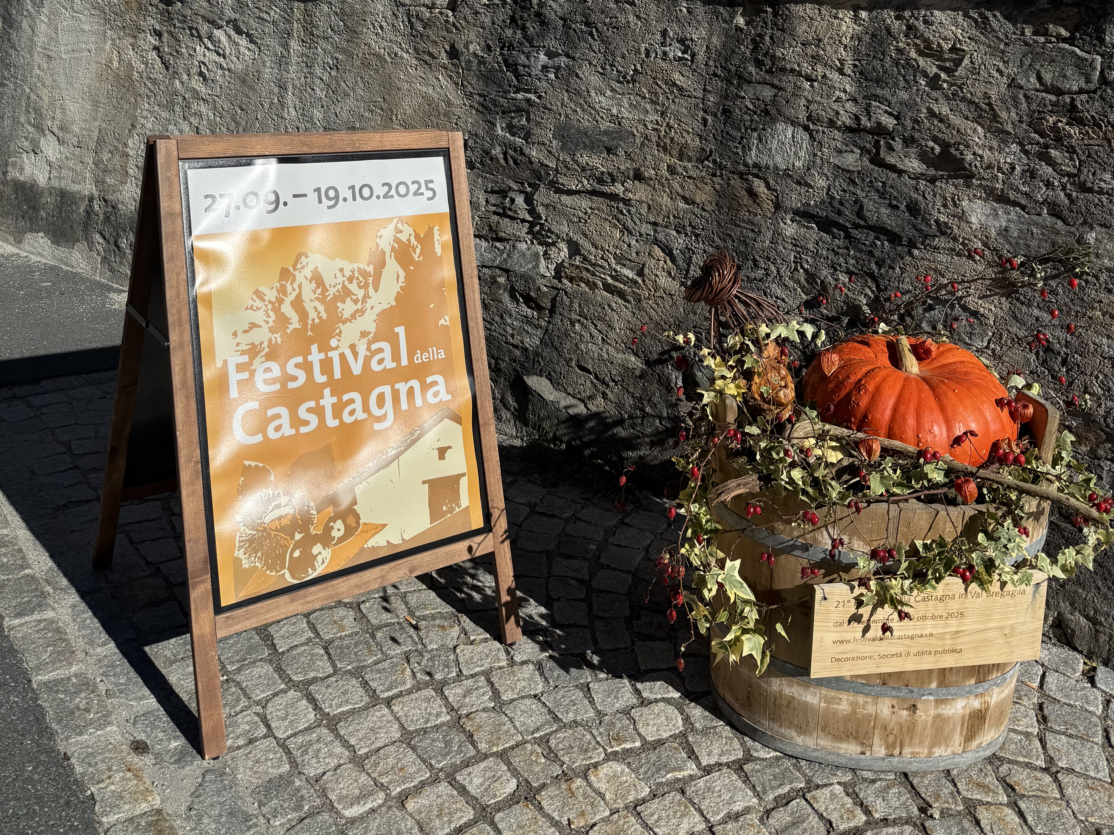 Il 21° Festival della Castagna è andato molto bene. L’affluenza di pubblico è stata ottima e la partecipazione agli eventi corrisponde con circa 3'000 partecipanti agli anni scorsi. Molti eventi hanno registrato il tutto esaurito. Le visite nel castagneto gestite dai castanicoltori stessi, sono state molto apprezzate. In generale gli ospiti sono interessati a scoprire di più sulla Bregaglia e a conoscere le tradizioni della valle. "Lan castegna da Calendamarz" e le altre specialità a base di castagna hanno attirato la curiosità dei visitatori, anche grazie al libro Castegna (edizione LandLiebe) uscito quest’autunno. Il 21° Festival della Castagna si è concluso domenica 19 ottobre 2025 in piazza a Castasegna con un ottimo riscontro degli ospiti e della popolazione locale. Un ringraziamento va a tutti i partner del 21° Festival della Castagna, alla Società d’utilità pubblica Bregaglia per le stupende decorazioni e a tutti coloro che hanno contribuito alla buona riuscita di questa edizione. L’appuntamento è per il 26 settembre 2026 con l’apertura del 22° Festival della Castagna a Vicosoprano.